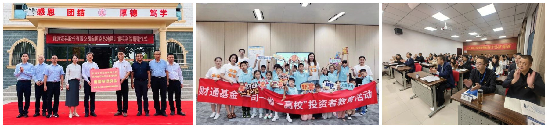 “资本市场红色引擎”党建品牌越擦越亮,以此为核心,构建了“正和财通 乐跑追梦”企业文化品牌、“廉合财韵”廉洁文化品牌、“一善染心”公益品牌、“三件实事”家文化品牌等品牌矩阵,激发基层党组织和广大党员奋勇扛起“金融为民”使命担当。以党建为统领,开展“财运亨通·走进浙商”金融助企系列活动,覆盖浙商浙企超3000家,近2年服务实体企业直接融资超2600亿元;围绕“进百校、结千企、入万家”,举办投资者教育公益活动4000多场,服务投资者超千万人次;勇担国企社会责任,3年来累计投入帮扶资金4600余万元积极推动乡村振兴与慈善公益,奋力书写财通服务“两个先行”新篇章。