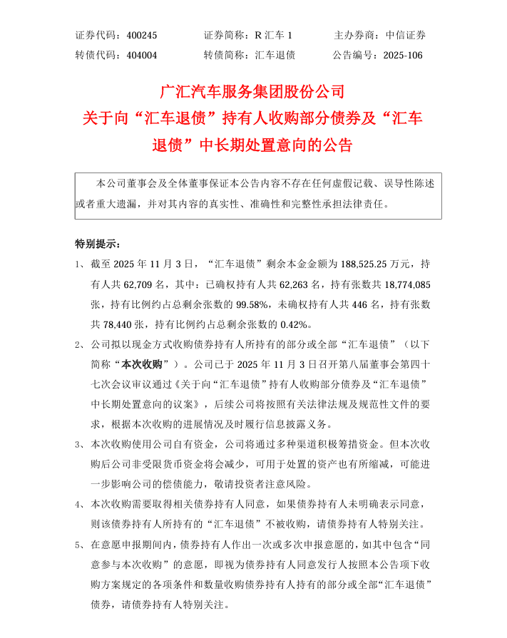 【广汇汽车服务集团股份公司 关于向“汇车退债”持有人收购部分债券及“汇车 退债”中长期处置意向的公告】:您是否在找【债券型基金理财技巧】、【债券融资和股权融资】、【发行债券对股价影响】、【股权融资和债券融资】、【股票融资和债券融资】、【债券etf手续费】、【债券基金收益排行】、【债券融资股权融资】、【华夏债券基金净值】、【华夏希望债券基金】,【广汇汽车服务集团股份公司 关于向“汇车退债”持有人收购部分债券及“汇车 退债”中长期处置意向的公告】