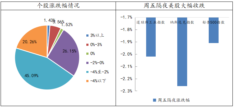 在经历了周四的放量反弹后,周五市场迅速地沉寂下来,各大指数基本回吐了前一日的涨幅,跌幅中位数更是达到了-2.66%,表明市场整体对周末消息面存在担忧。周五,中国国务院关税税则委员会决定自明年起,对美国汽车及零部件暂停加征关税3个月,前期由于惩罚性关税而超跌的零部件厂商、以及特斯拉产业链有望受益。此外,特朗普在推特上也表达了对中美谈判的乐观预期。但周五消息公布后,美股隔夜仍大幅收跌,贸易局势缓和对情绪的提振作用正在逐渐消退,市场对经济增长或将放缓的担忧令股市承压。