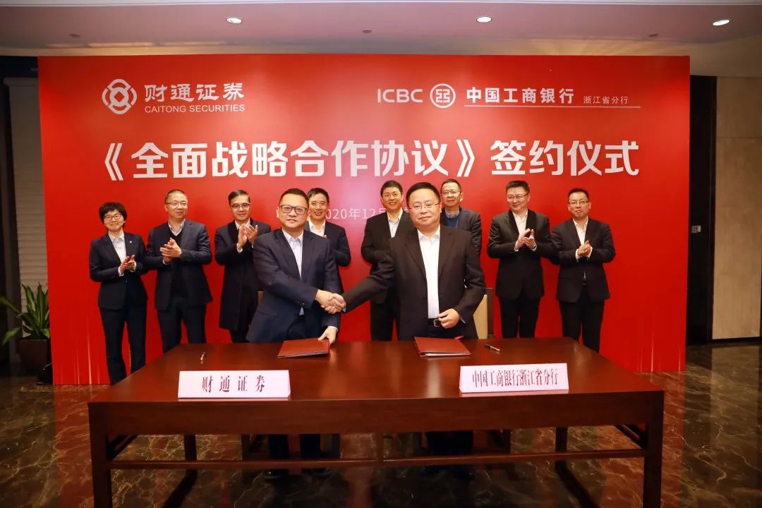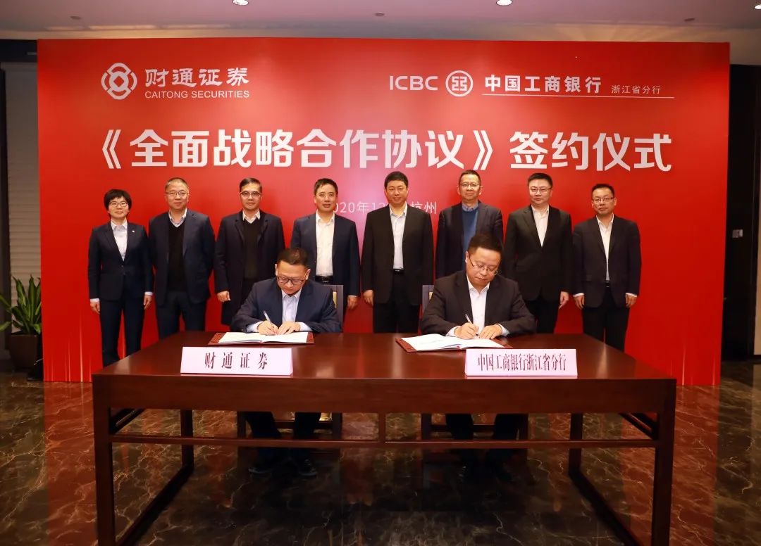 12月23日,公司与工商银行浙江省分行签署全面战略合作协议。根据协议,双方将坚持互惠互利、长期合作,在经纪业务、资产管理、资金融通、基金期货业务、创新业务等领域开展更深层次合作和互补协同,共同推动金融生态共创共享,服务区域经济高质量发展。公司党委书记、董事长陆建强,财务总监王跃军,总经理助理马晓立,工商银行浙江省分行党委书记、行长戴春林,副行长阮云波、杭州分行行长包伶捷、行长助理聂晶等出席签约仪式并座谈。王跃军、聂晶分别代表双方签署全面战略合作协议。