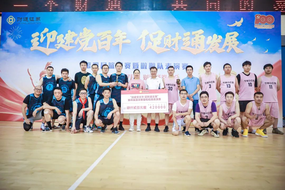 奋斗正青春,青春献给党!7月4日,“迎建党百年 促财通发展一一第四届篮球赛暨啦啦队表演赛”在杭州市职工文化中心圆满闭幕。财通运动健儿们激情飞扬,活力四射,用拼搏的风采向建党百年献礼!