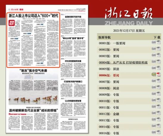 【媒体之声丨浙江日报:浙江A股上市公司迈入“600+”时代】:您是否在找【a股股指期货交易规则】、【众禄a股定增2号基金】、【a股市场行情分析】、【a股股指期货代码】、【a股连续跌停记录】、【股票开户a股b股】、【a股etf基金】、【a股交易手续费】、【a股指数etf】、【a股最多涨停板】,【媒体之声丨浙江日报:浙江A股上市公司迈入“600+”时代】【 2021年12月16日,浙江全省A股上市公司迈入600家时代,同时成为继广东之后全国第二个进入A股上市公司“600家方阵”的省区。针对此,sunbet申搏党委书记、董事长陆建强接受了浙报全媒体采访。▲《】