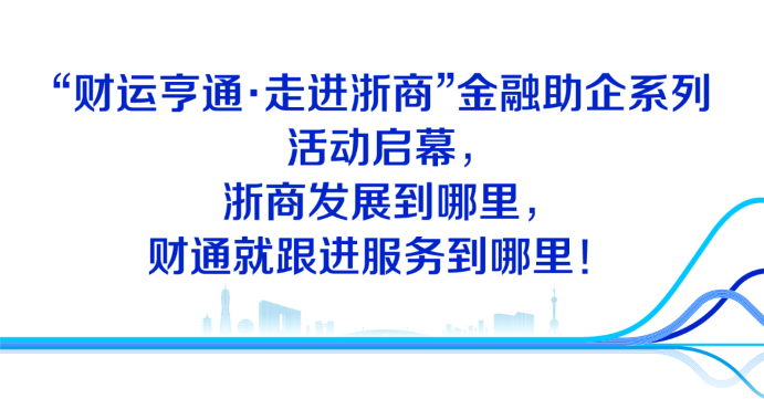 “作为财通建司30周年的系列活动之一,今年组织开展‘财运亨通·走进浙商’金融助企活动,一方面是想表达信心和信念,中国经济前景‘长风破浪、未来可期’,浙江以‘三个一号工程’续写‘八八战略’大文章,浙江经济和浙商浙企迎来了发展机遇,我们希望通过金融服务更好帮助企业提信心、稳预期、促增长。另一方面是想寓意服务到、福气来。财通希望搭建一个平台,将综合金融服务带到浙商浙企身边,以金融力量打通企业和产业发展的‘任督二脉’,共同开启财运亨通的好彩头。”