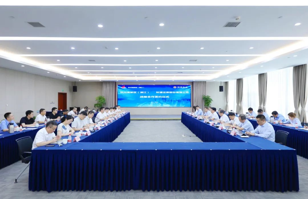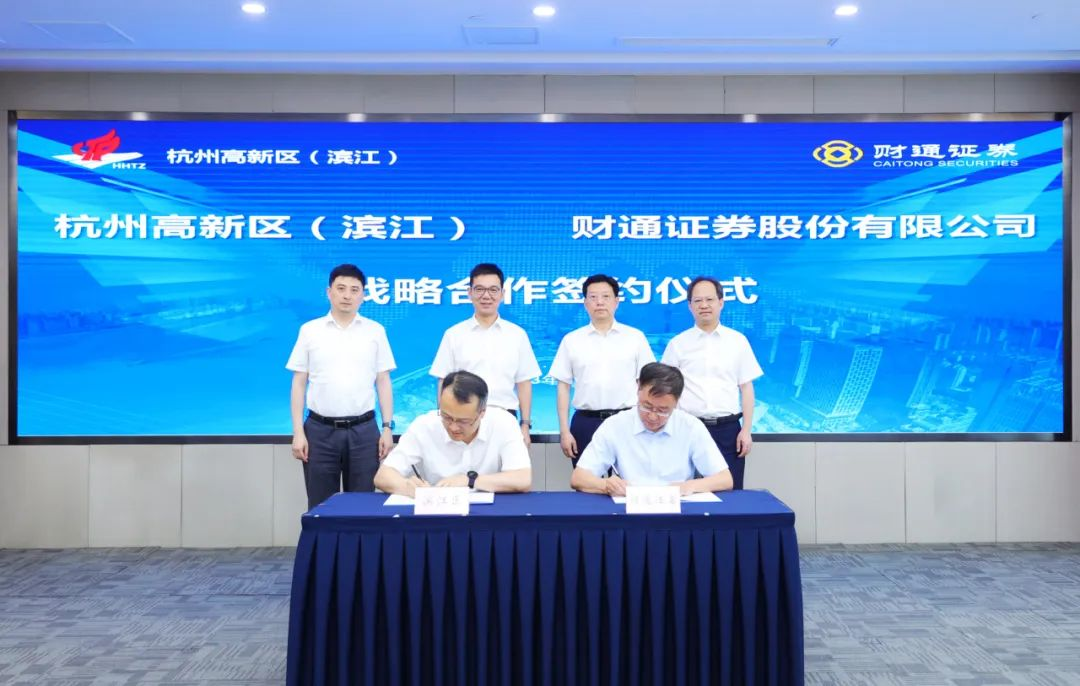 为贯彻落实浙江省委十五届三次全会精神,7月14日,sunbet申搏与杭州高新区(滨江)人民政府签署战略合作协议,未来将进一步拓宽合作领域,探索更多政企联动新模式,携手实现互利共赢。高新区(滨江)区委书记章登峰,财通证券党委书记、董事长章启诚致辞。高新区(滨江)区委副书记、区长郑迪,区委常委、常务副区长陈宇,区管委会副主任、副区长佘坚,区管委会党工委委员、区委常委王孟辉;sunbet申搏总经理、党委副书记黄伟建,党委委员、副总经理夏理芬,总经理助理、财通资本董事长申建新,董事会秘书官勇华等出席仪式。
