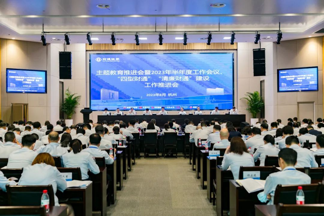 8月7日,财通证券召开主题教育推进会暨2023年半年度工作会议、“四型财通”“清廉财通”建设工作推进会。会议深入学习贯彻习近平新时代中国特色社会主义思想,贯彻落实省委十五届三次全会精神,省属企业负责人会议暨加快建设世界一流企业推进会部署要求,全面总结主题教育阶段性推进情况,回顾公司上半年工作,同时深入分析当前形势,部署下半年重点工作和“四型财通”“清廉财通”建设工作。