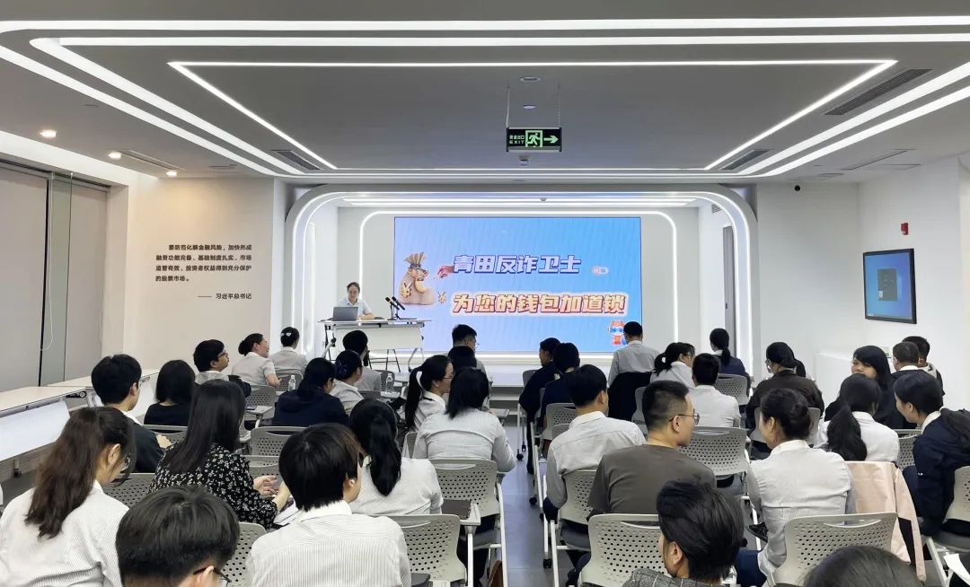 参观结束后,投教基地工作人员就如何提升风险防范意识,增加防非反诈技巧开展了主题宣讲活动,通过生动的案例让大家能够擦亮眼睛,识别骗局。活动现场还播放了青田反诈宣传片,提醒大家注册国家反诈APP和青田反诈卫士,运用科技手段为大家的钱袋子加道锁。