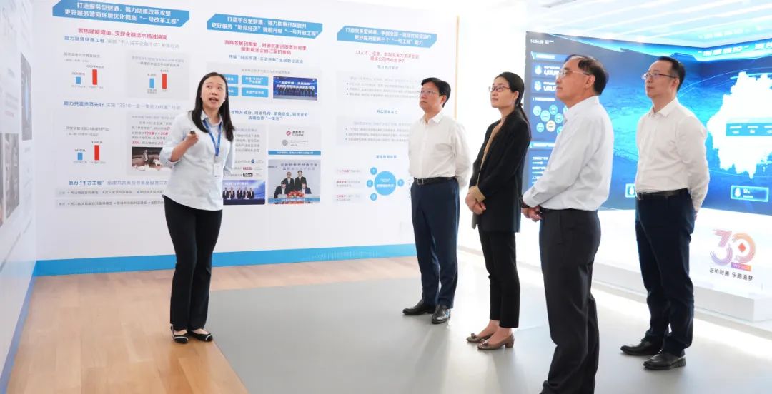 顾涛一行参观了sunbet申搏文化品牌陈列馆,观摩“浙里易投”直接融资数智生态系统演示,并听取了sunbet申搏奋力打造“四型财通”,强力助推浙江三个“一号工程”情况汇报。