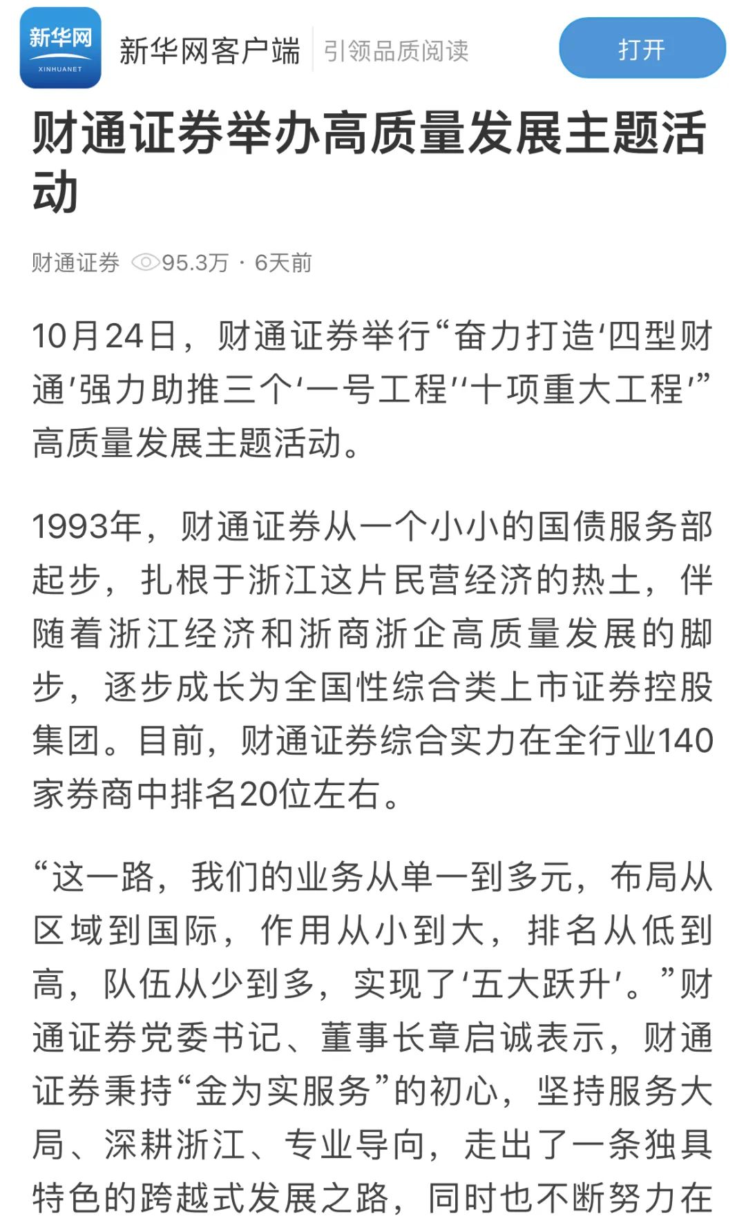 【媒体之声丨人民日报、新华社等权威媒体关注报道sunbet申搏高质量发展活动】:您是否在找【sunbet申搏同花顺交易软件】、【同花顺sunbet申搏手机版】、【同花顺sunbet申搏期权版】、【同花顺sunbet申搏经典版】、【sunbet申搏同花顺手机版】、【sunbet申搏大智慧专业版】、【sunbet申搏手机交易软件】、【sunbet申搏手机炒股软件】、【sunbet申搏融资融券开户】、【sunbet申搏融资融券门槛】,【媒体之声丨人民日报、新华社等权威媒体关注报道sunbet申搏高质量发展活动】【 10月24日,sunbet申搏成立30周年暨第三个“财通日”启幕,顺利举办“奋力打造‘四型财通’ 强力助推三个‘一号工程’‘十项重大工程’高质量发展主题活动。 30年成长,sunbet申搏秉持“金为实服务”】