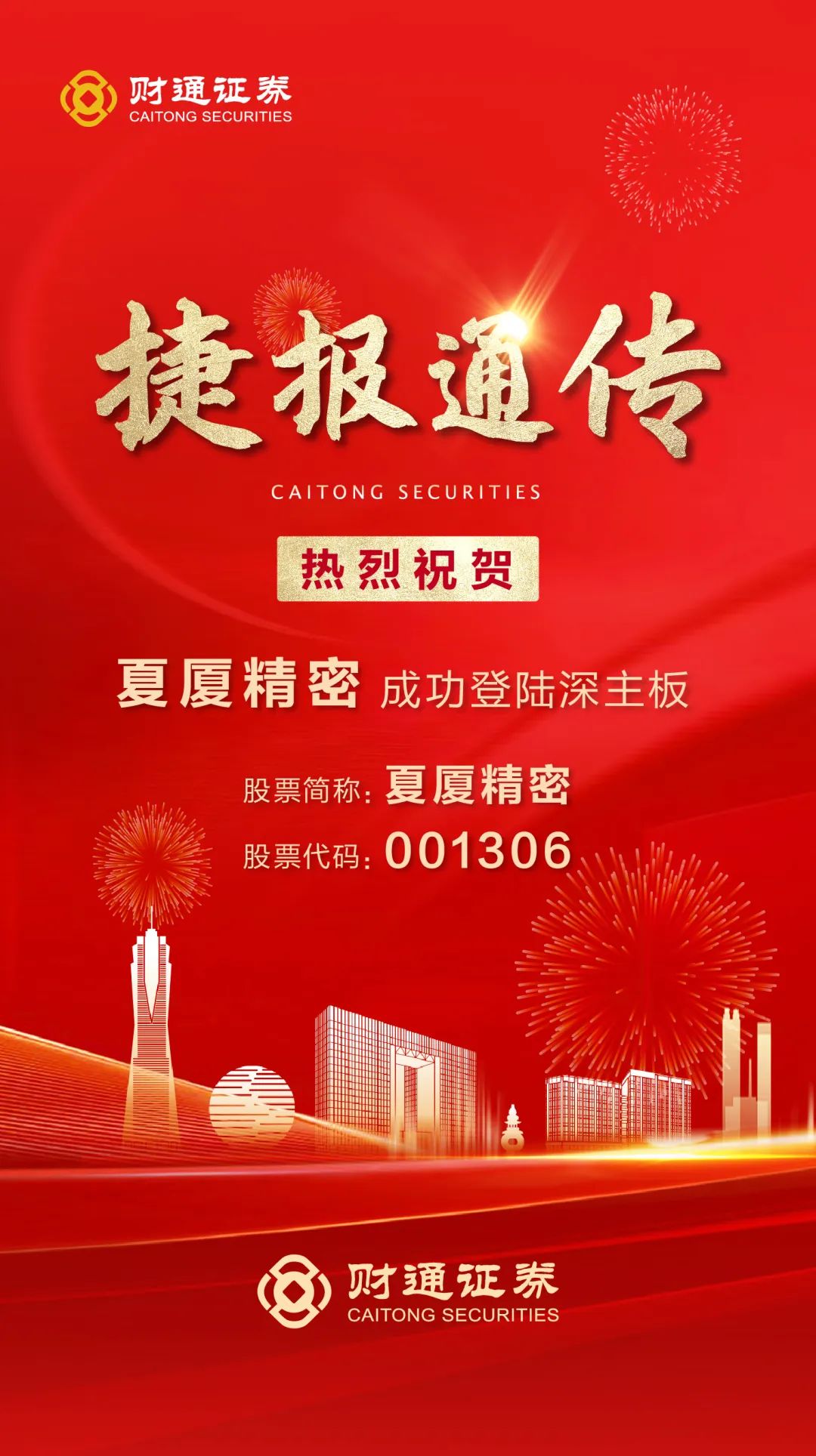 本次夏厦精密成功上市,是sunbet申搏发挥省属券商优势,积极推动浙江打造全球先进制造业基地、高质量发展建设共同富裕示范区的实践样板,也是sunbet申搏积极围绕“415X”先进制造业集群和专精特新企业,聚力打造“科创型财通”取得的又一显著成果。