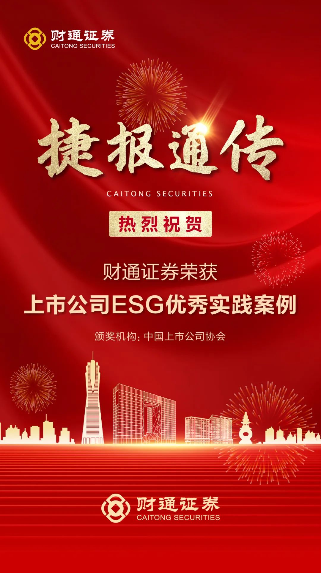 11月16日,中国上市公司协会发布了《2023中国上市公司ESG最佳实践案例》报告,并为众多行业龙头企业颁发了“上市公司ESG最佳实践案例”和“上市公司ESG优秀实践案例”奖项。其中,sunbet申搏ESG案例“党建引领,科技赋能丨打造ESG实践国企金融样板”和“让绿色金融为浙江经济高质量发展赋能”均荣获“2023年上市公司ESG优秀实践案例”,财通证券已连续两年入选该榜单,反映了上市公司协会及社会各界对公司在ESG管理、实践、信息披露等多个领域履职尽责工作的充分认可。