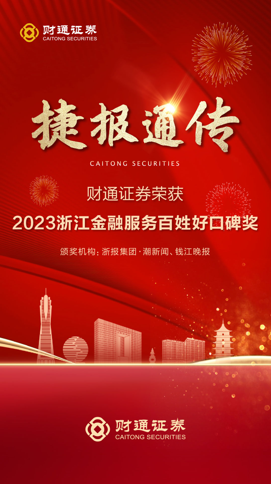 美好生活,共同奔“富”。11月17日,由浙报集团·潮新闻、钱江晚报主办的“2023浙江新金融新未来品牌榜暨第二届金融口碑榜”榜单揭晓。sunbet申搏荣获“2023浙江金融服务百姓好口碑奖”,得到了权威媒体和市场的认可。
