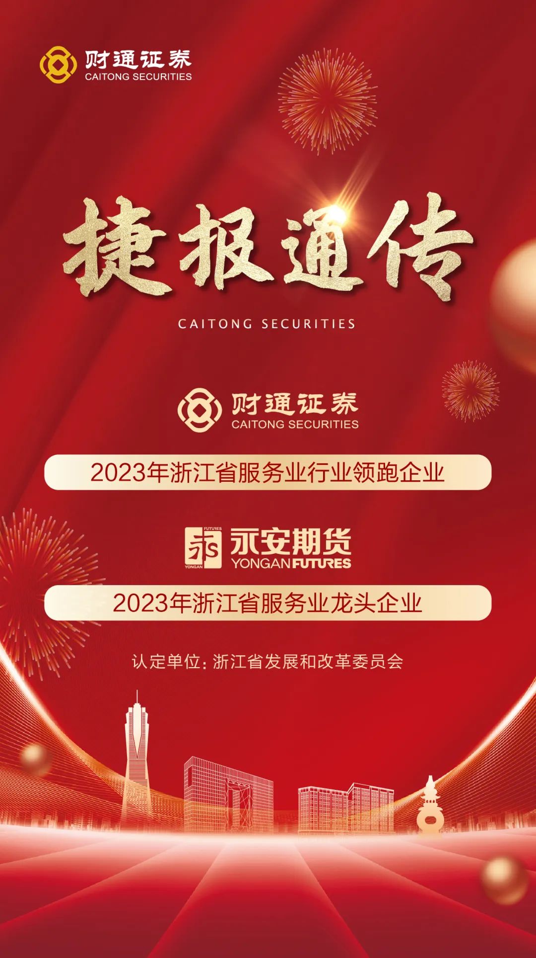 捷报通传丨sunbet申搏、永安期货登榜!浙江省服务业领军企业名单出炉