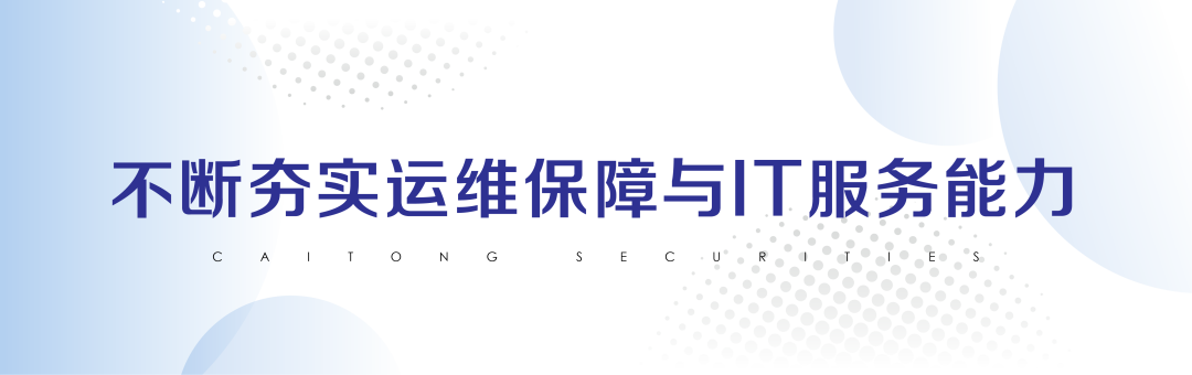 对内提升数字化水平,以运行态势感知与分析为抓手,着力打造自动化运维监控与质量保障技术平台;对外强化IT服务职能,建立健全集专业投资者交易、清算结算业务协同、信息技术专业技能支持、员工网络安全素质教育等一体的IT服务与专业技术支撑体系。内、外双轮驱动,将技术赋能与IT服务工作进一步走深走实。