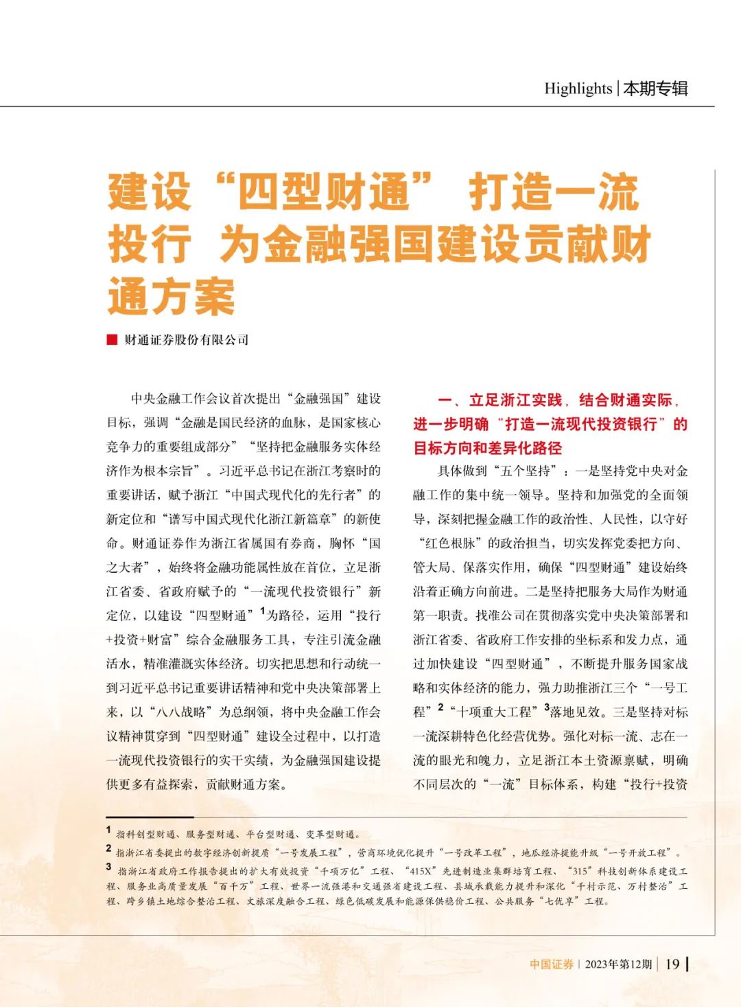 《中国证券》刊载:建设“四型财通”,打造一流投行,为金融强国建设贡献财通方案