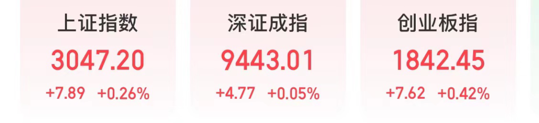 截至上午收盘,上证指数上涨0.26%,深证成指上涨0.05%,创业板指上涨0.42%。