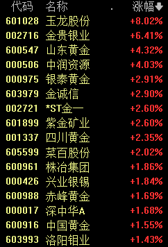 黄金板块走强