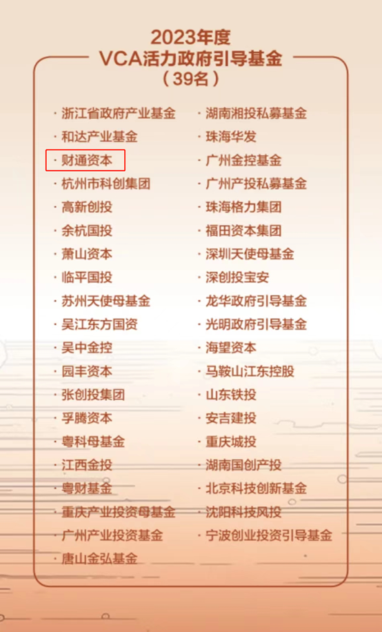 捷报通传丨财通资本荣获“2023年度VCA活力政府引导基金”奖项