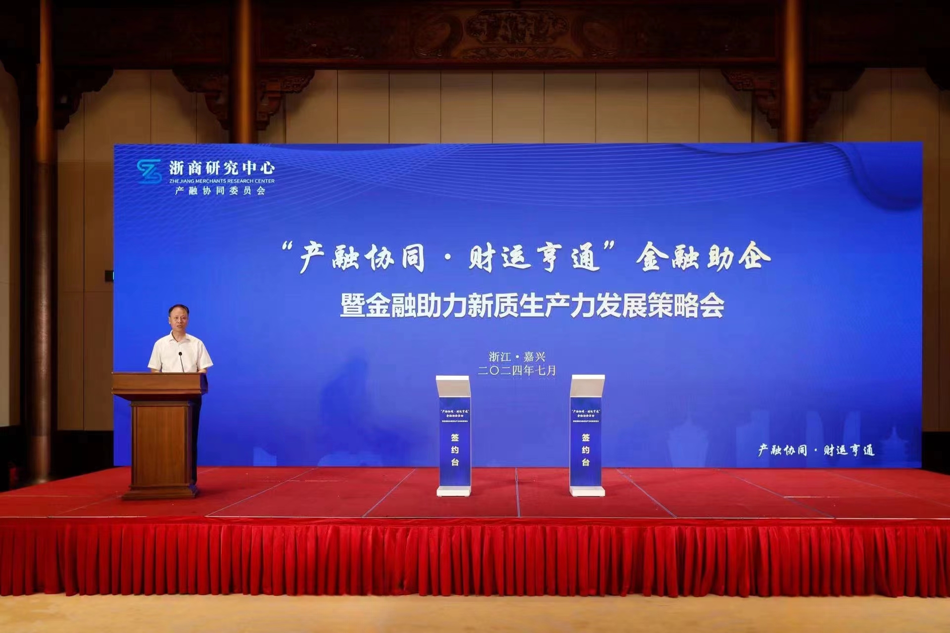 为认真贯彻落实党的二十届三中全会精神,积极践行中央和省委金融工作会议金融服务实体经济根本宗旨,助力嘉兴打造长三角科技成果转化高地和建设科创金融改革试验区,7月24日,浙商研究中心产融协同委员会“产融协同·财运亨通”金融助企活动暨金融助力新质生产力发展策略会在嘉兴举行,本次活动旨在引导更多金融资源向发展新质生产力集聚,为嘉兴市科创企业与金融机构搭建合作对接桥梁。