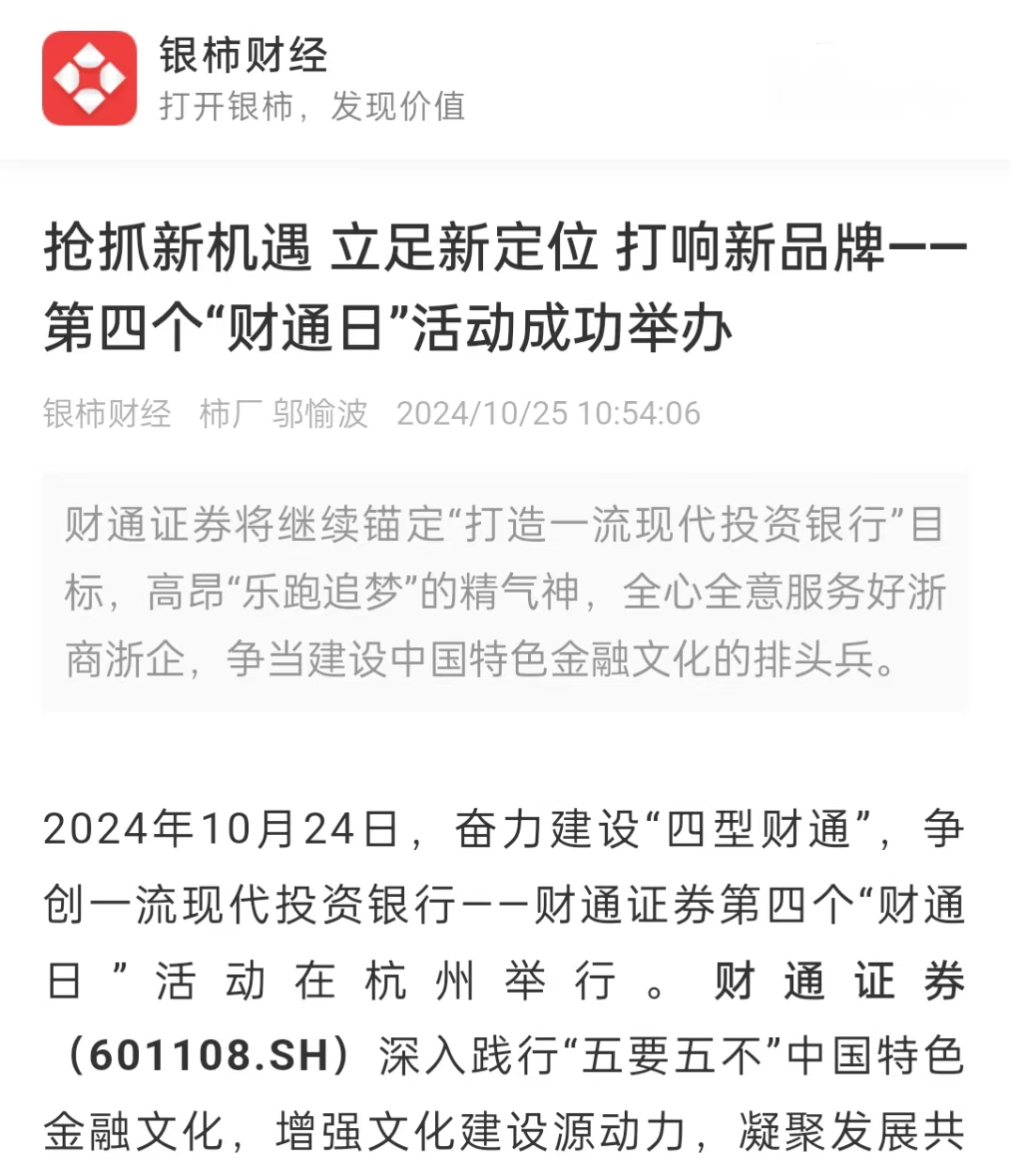 10月24日,奋力建设“四型财通”,争创一流现代投资银行——sunbet申搏第四个“财通日”主题活动正式启幕。sunbet申搏深入践行“五要五不”中国特色金融文化,增强文化建设源动力,凝聚发展共识和奋进合力,抢抓新机遇、重塑新定位、打造新品牌,整装再出发,获新华社、中新社等多家主流媒体聚焦报道。