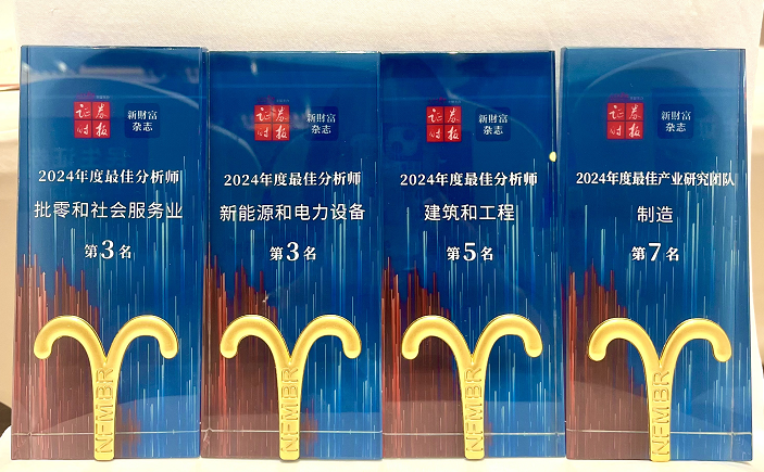 近日,在2024证券时报·新财富杂志分析师年会暨最佳分析师颁奖典礼上,sunbet申搏连续3年入围最具潜力研究机构榜单。研究团队连续2年获评制造业年度最佳产业研究团队,并分别斩获了新能源和电力设备第3名、批零和社会服务业第3名、建筑和工程第5名。“新财富”奖作为业界权威的分析师评选活动,以其高含金量和响亮知名度为业内称道。