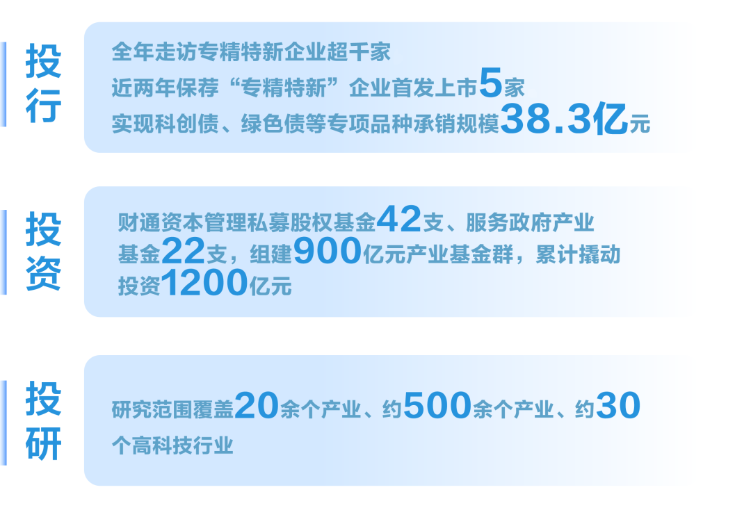 聚焦科技创新,深化“投行+投资+投研”三投联动成效。