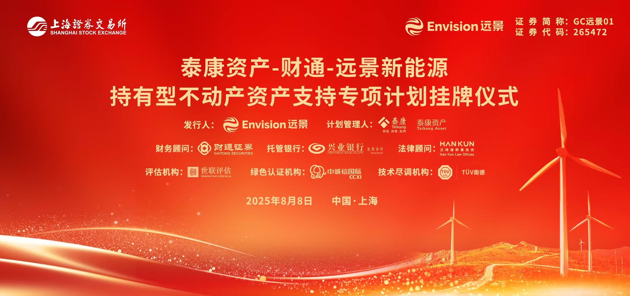 8月8日,全国首单清洁能源持有型不动产ABS“泰康资产-财通-远景新能源持有型不动产资产支持专项计划(碳中和)”(以下简称“远景能源ABS”)在上海证券交易所举行挂牌仪式。该项目的成功挂牌,标志着我国清洁能源资产证券化的结构性创新,展现了绿色金融可测算、可验证的实践范式。
