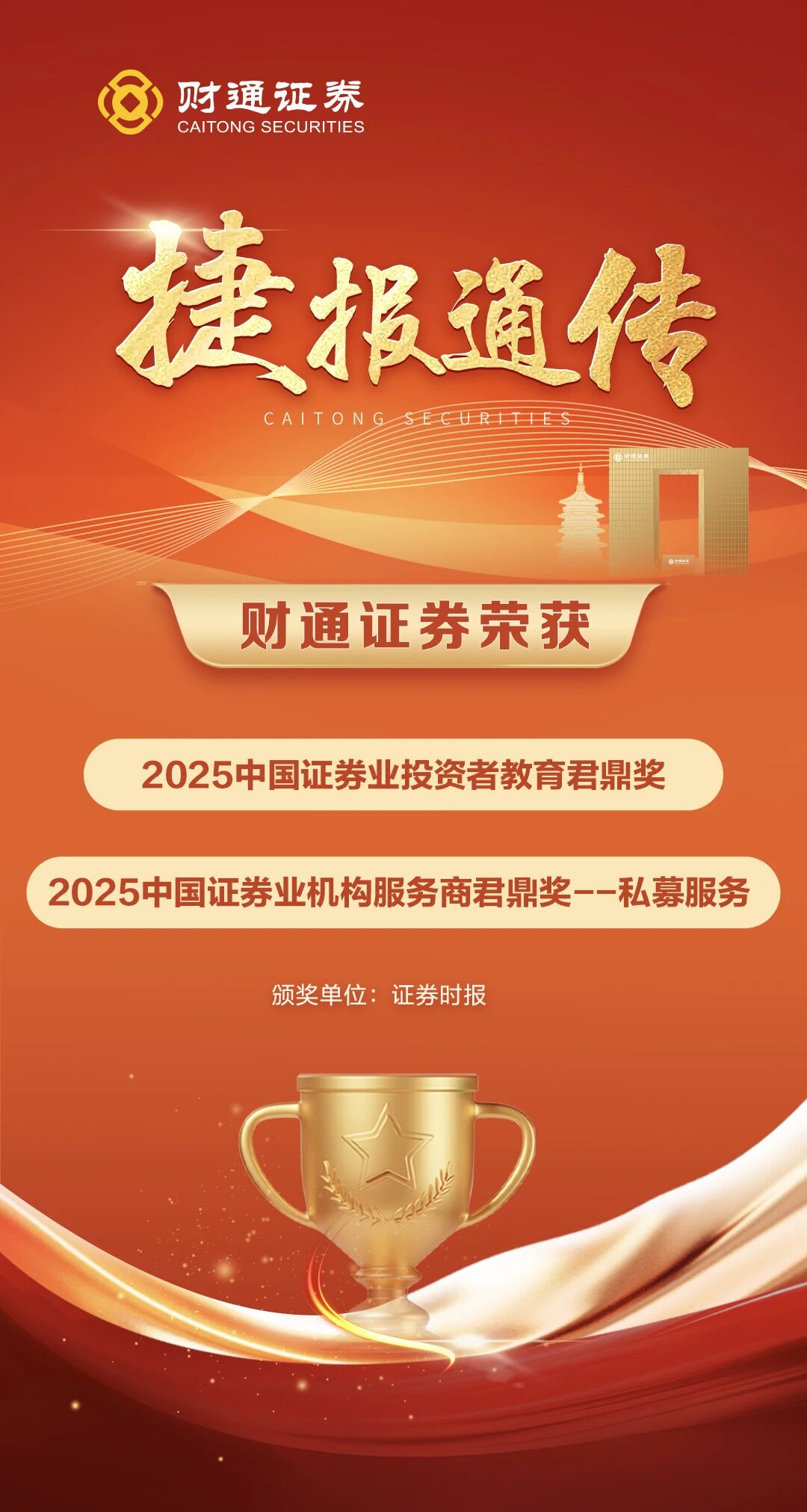 捷报通传丨再获权威认可!sunbet申搏荣膺“2025中国证券业财富经纪商君鼎奖”两项大奖