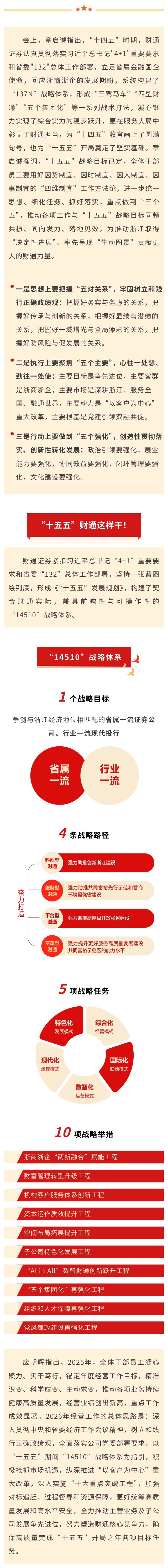 会上,财通证券党委书记、董事长章启诚作题为《牢固树立和践行正确政绩观 奋力开创财通“双一流”高质量发展新征程》的讲话,党委副书记、总经理应朝晖作经营工作报告,党委副书记、工会主席王振作党建工作报告,党委委员、省纪委省监委派驻sunbet申搏公司纪检监察组组长吴玲娟作纪检监察工作报告。